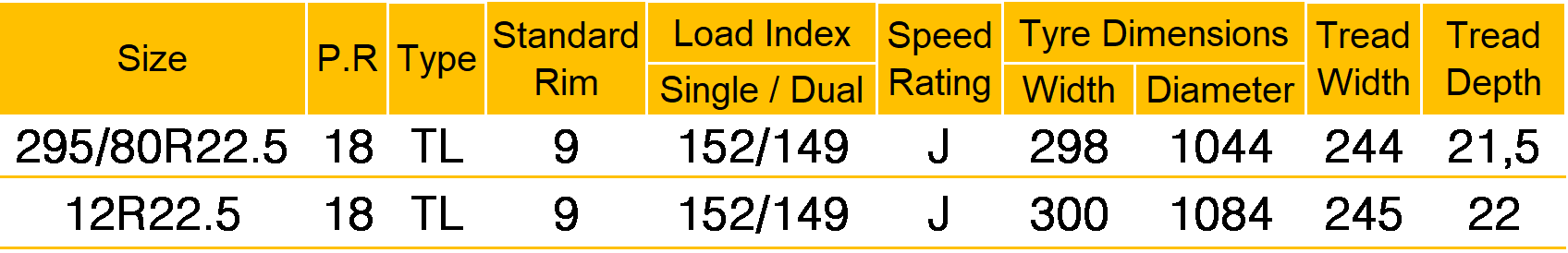 • Bias Tire Type : Nylon / Thread (Cold Tire).